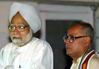 Manmohan Singh (L) and