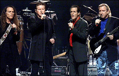 The Eagles, fronted by drummer-vocalist Don Henley and guitarist Glenn Frey, pioneered the west coast sound of laid-back country-tinged rock that dominated early 1970s American pop.