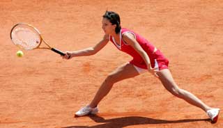Myskina appeared relaxed as she settled into the match. But Dementieva struggled with awkward footwork - a sign of nerves - and was often out of position on shots. Twice she hit swinging volleys into the net.