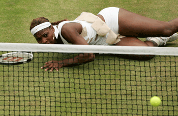 It was the most one-sided of the pair's 16 career confrontations -- one of the great rivalries of recent years in women's tennis -- and only the fifth time the winner has secured victory in two sets. "I was very surprised ... I came out here and I was really, really focused and knew what I wanted to do," said Serena, who is bidding to become the first woman since Steffi Graf in 1993 to win three consecutive Wimbledon singles titles. "I know when I have to play Jen, she can be really tough so I can't let up at all. "I definitely have a lot of things to work on but I'm glad just to be through to the semi-finals after coming back from the injury." Capriati shadow Although both Americans entered the contest without dropping a set in this year's campaign, seventh seed Capriati was simply a shadow of the player who overwhelmed Serena four weeks ago. After Capriati had won her opening service game to take a 1-0 lead, she failed to hold serve even once as Serena ruthlessly pounded away from the baseline to take eight games in a row. A couple of errors and a double fault finally handed Capriati her first break point of the match in the third game of the second. Surprisingly given her nerveless performance, Serena double faulted again to gift her opponent the break. However, that was the last time Capriati registered on the Centre Court scoreboard as Serena hurtled towards a quick-fire victory. A diving volley from Serena, which Capriati failed to get over the net, sealed the win and a semi-final meeting with fourth-seeded Frenchwoman Amelie Mauresmo. "She just didn't do anything wrong," Capriati summed up. "You try to fight but you don't know what to do... whatever you try is just not good enough. "It's really hard, you know? But I can't allow myself to get discouraged. Sometimes other players are just too good and they will crush you but what is great about this game is there is always the next tournament." |