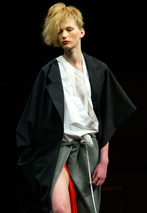 A model displays an outfit for Italian designer Susanna Liso during her Fall/Winter 2004-2005 haute couture collection show at Rome's Fashion Week July 12, 2004. [Reuters]