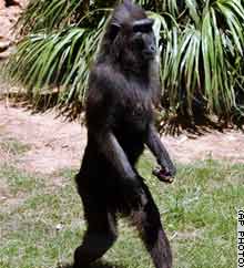 Monkeys usually alternate between upright movement and walking on all fours. A picture in the Maariv daily on Wednesday showed Natasha standing ramrod straight like a human. The picture was labeled humorously, "The Missing Link?" Two weeks ago, Natasha and three other monkeys were diagnosed with severe stomach flu. At the zoo clinic, she slipped into critical condition, said Igal Horowitz, the veterinarian. "I was sure that she was going to die," he said. "She could hardly breathe and her heart was not functioning properly." After intensive treatment, Natasha's condition stabilized. When she was released from the clinic, Natasha began walking upright. "I've never seen or heard of this before," said Horowitz. One possible explanation is brain damage from the illness, he said. Otherwise, Horowitz said, Natasha's behavior has returned to normal.