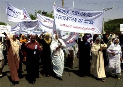 The protest Wednesday reflected the government's success in convincing ordinary Sudanese that Western military intervention in Darfur is an imminent danger.