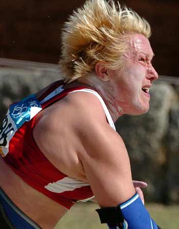 Korzhanenko, who served a previous two-year drug suspension, faces a lifetime ban from the sport. In 1999, she was stripped of the silver medal at the world indoor championships for a doping violation and was given a two-year suspension that kept her out of the 2000 Sydney Olympics.