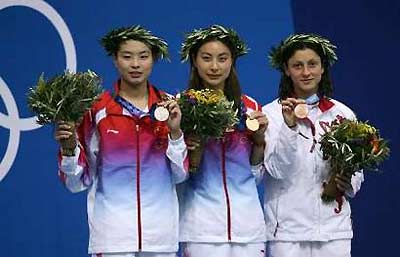 Pakhalina added to a pair of synchronized Olympic medals. She won a gold in Sydney, a silver earlier in the Athens Games and now the bronze — a complete set.