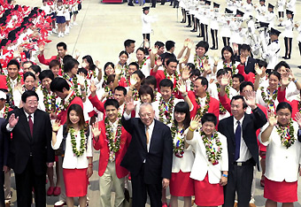 The visit was also an expression of thanks to local citizens for their long-standing support to China's sports sector, Yuan said. The medallists touched down at the airport shortly before noon. They were greeted there by Chief Executive Tung Chee-hwa, Director of the Liaison Office of the Central People's Government Gao Siren, Commissioner of the Ministry of Foreign Affairs in Hong Kong Yang Wenchang and other officials. About 130 children waved national and Hong Kong flags as a police band played the national anthem and other rousing music. Tung called the athletes "the pride of Hong Kong and the pride of the nation," and said the community was very happy to receive them after their triumphs. The ceremony was followed by a reception attended by about 500 people at the Government House and a banquet hosted by the Hong Kong Olympic Committee last night. At the reception, Tung said the Chinese athletes' performance brought world attention and put China and the 2008 Beijing Olympic Games in the international spotlight. "During the 16-day Games, you and our own athletes from Hong Kong have brought us touching moments, one after another," he noted, recalling the national and Hong Kong flags raised and national anthem played in Greece during medal presentation ceremonies. "They made our hearts feel closer than ever to the motherland," Tung said. "The heroic words, 'Asia has me. China has me' (of 110 metres hurdles winner Liu Xiang), echo deeply in our hearts." Tung also praised the athletes for completing arduous training, uncommon perseverance and showing relentless fighting spirit. "I take this valuable opportunity to thank the Chinese athletes who are here to share with us the glory and joy of victory immediately after these exciting competitions," he said. Speaking on the same occasion, Yuan labelled the grand reception organized by Hong Kong government "impressive." "We have come to share with you our pride and joy. We look forward to increasing exchanges and co-operation between Hong Kong and the mainland, and wish Hong Kong a future of more prosperity and development," Yuan said. Hong Kong Olympic Committee President Timothy Fok spoke highly of the athlete's sportsmanship that "every Chinese takes pride in."