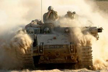 drive their tank on the outskirts of the Gaza Strip near Kibbutz Mefalsim