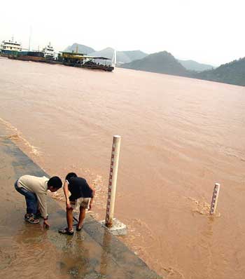 The world's largest hydroelectric project, built to tame the flood-prone Yangtze, now faces a test as residents downstream await the crest. So far, no major damage has been reported in Hubei or Hunan, although communities near Dongting, the country's second-largest freshwater lake and a spillover for the Yangtze, were placed on alert. With the rains passed, relief work in flood-damaged regions of southwestern Sichuan and Chongqing turned to cleaning up the mess and preventing epidemics. Sichuan disaster officials reported the toll had reached 102 dead and 25 missing. In neighbouring Chongqing, the death toll had risen to 75 and 25 were missing. Most of the deaths were caused by mudslides and flash floods sweeping through mountain valleys after five days of heavy rains beginning last Thursday. Front-end loaders scraped reddish mud from city streets. Other workers sprayed disinfectant. Peasants removed rocks from beside one home that narrowly escaped a landslide. Another home sat stranded in a sea of mud, while a third, nearly submerged, was toppled by a ruddy torrent of water, state television showed. "We'd be in a terrible state if we were still in our home," said one Sichuan man, smiling from a hotel bed paid for by provincial relief officials. Others huddled in blue tents filled with cots. The floodwaters destroyed more than 400,000 hectares (one million acres) of cropland and caused damage estimated at more than 3.9 billion yuan (US$471 million). Vice Premier Zeng Peiyan had toured flood-hit areas of Sichuan and urged