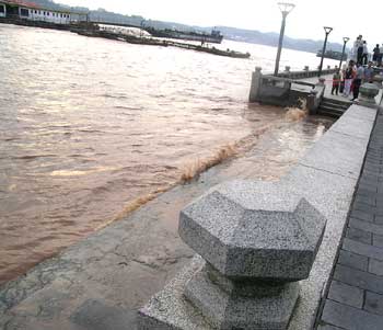 Xinhua news agency said the floods was the worst in a century and central Hubei and Hunan provinces downstream on the Yangtze are bracing for the torrent of muddy water heading towards them. An official with the Three Gorges Dam said water levels remained high and navigation on the reservoir was still suspended. "The peak passed early in the morning. Today the water flow is still high but not at its highest," the official said. The locks would reopen and navigation could resume in two to three days, he said.