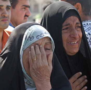 A correspondent counted at least 15 bodies lying near the blast site and a Reuters' cameraman said at least 20 bodies were in the morgue of a nearby hospital. There were conflicting reports about what caused the blast. The US military and Interior Ministry said the explosion was caused by a car bomb attack, but some witnesses said the blast was caused by a rocket or mortar.