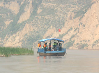 A rescue ship tries to locate survivors after a river ferry capsized Thursday in Linyi County, North China's Shanxi Province. [newsphoto]