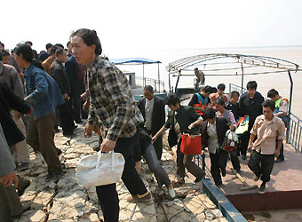 Local villagers identify a victim's body by the river where a ship overturn killed at least 12 people Thursday in Shanxi Proince. [newsphoto]