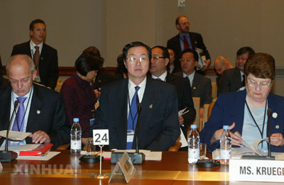Zhou Xiaochuan (C), governor of the People's Bank of China, attends a meeting of the International Monetary and Financial Committee (IMFC) in Washington, the United States, Oct. 2, 2004. The IMFC is the policy-making body of the International Monetary Fund (IMF). [Xinhua]