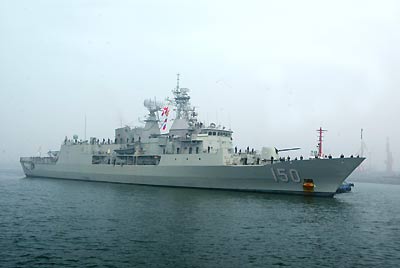Australian frigate Anazc arrives in Qingdao, east China's Shandong Province, Sunday for a joint naval search-and-rescue exercise with the North China Sea Fleet. [newsphoto]