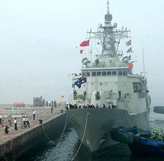 Australian frigate Anazc arrives in Qingdao, east China's Shandong Province, Sunday for a joint naval exercise with the North China Sea Fleet. [newsphoto]