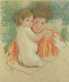 Among the group are seven counterproofs that are the only evidence of previously unrecorded pastels by Cassatt, while others were known only from black and white photographs. The counterproof technique, which was also a favorite of Degas, softens the often highly textured surface of a pastel drawing, giving an ethereal quality to Cassatt's drawings of mothers with their children or portraits of rosy-cheeked girls in bonnets or playing with a dog. Born in Allegheny City, Pennsylvania, Cassatt is known for her pictures with