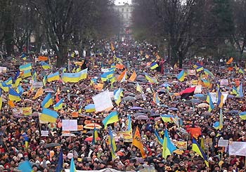 Ukraine, November 23, 2004. Up to 200,000 protesters rallied outside an
