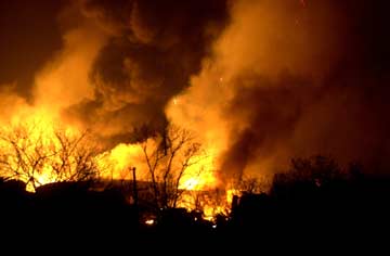 Heavy smoke billows after a railway carriage with firecrackers exploded at the suburbs of Changsha, Hunan Province, December 9, 2004. [newsphoto]