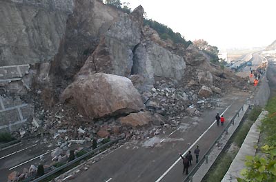 Landslide blocks expressway in Zhejiang (newsphoto) Updated: 2004-12-13 08:43