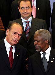 British Prime Minister Tony Blair met Annan before the U.N. chief was to address a full session of 25 EU leaders. A British official said the breakfast meeting avoided the summit's main topic, Turkey's bid for EU membership and its refusal to recognize the divided Mediterranean island of Cyprus. Annan pushed hard last year to resolve the Cyprus dispute, but his efforts were rebuffed when the Greek Cypriot government rejected his unification plan, even though it was embraced by Turkish Cypriots. The European Union has been among Annan's staunchest supporters as he tries to ward off criticism from U.S. conservatives over Iraq's oil-for-food program. Saddam Hussein's regime skimmed billions of dollars from the U.N.-supervised program. In Brussels, Annan wants firm support from Europe's leaders for a plan to expand and reshape the Security Council and to set clearer guidelines for its members to use pre-emptive force. The U.N. chief commissioned the plan last year after the battle at the United Nations over U.S. policy in Iraq. The 16-member panel recently issued its report. The commission agreed the Security Council may need "to be more proactive in the future," but it said all states have an obligation to discuss distant threats at an early stage. Annan believes the 15-nation council, with its exclusive five-nation club at its core, needs to be reviewed to reflect power shifts in the world since the United Nations was created in 1945. The plan also outlined ways to deal with global threats — terrorism, poverty, infectious diseases and multinational crime. A restructuring of the Security Council could fuel anger at Annan in the United States if the changes are seen as diluting U.S. authority. The United States shares veto powers with Britain, China, France and Russia. The panel failed to reach a consensus on the Security Council's future shape and presented two options. One would add six new permanent members, but without veto powers. The other would create a new tier of eight semi-permanent members; two each from Asia, Africa, Europe and the Americas. Panel members agreed only that the current five permanent members should retain the veto. Before the plan was released, U.S. Assistant Secretary of State Kim R. Holmes said any shake-up should be done "without making the Council any more unwieldy than it already is." Those responsible for funding and carrying out its decisions should have the most say, he said. Brazil, Germany, India and Japan are among those countries that claim to have achieved regional superpower status and have been pressing for permanent seats. In Washington on Thursday, Annan met outgoing Secretary of State Colin Powell and his designated successor, National Security Adviser Condoleezza Rice. The U.S. administration has been asking the U.N. chief to reinforce the 25 election experts now in Iraq.