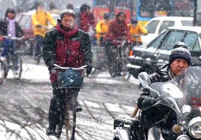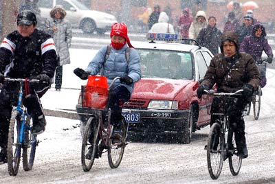 Chinese capital in a blanket of white on Wednesday, January 5, 2005. The