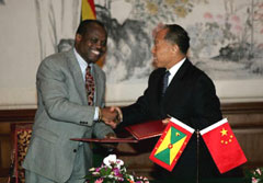 "This practice indicates the arrival of a new phase for the development of Sino-Grenadian ties, and paves the way for the two countries to make cooperation in an all-round way," Li noted. Li said the normalization of Sino-Grenadian relationship conforms with the fundamental interests of the two peoples, and it will strongly promote the exchanges and cooperation between the two countries in various fields. China cut off diplomatic ties with Grenada in 1989. "Today's resumption of ties reaffirmed to the whole world that "the one-China policy is commonly acknowledged by the international community, and that any separatist attempt of 'Taiwan independence' forces is doomed to be defeated," Li said. He said the Chinese government "is willing to cooperate with Grenada, in line with the Five Principles of Peaceful Coexistence,in such fields as politics, economy, trade, culture and education," and that he hoped the two sides would "increase personnel exchanges, strengthen mutual understanding and political trust, and send ambassadors and set up embassies to each other at an early date." Nimrod said resuming diplomatic ties with China is historically significant, and Grenada is willing to develop long-term friendly and cooperative ties with China. "The Grenadian government recognizes that there is only one China in the