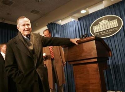 "People want to read a lot into it — that this means new aggression or newly assertive military forces," former US President Bush told reporters during an informal visit to the White House briefing room. "That's not what that speech is about. It's about freedom." In Thursday's speech, Bush said: "We will persistently clarify the choice before every ruler and every nation: The moral choice between oppression, which is always wrong, and freedom, which is eternally right." That raised the question whether Bush intended to apply new standards to allies or partners who keep democracy at arm's length and have poor records on human rights. "It doesn't mean instant change in every country — that's not what he intended," Bush said about his son's second inaugural address. The president, who during the 2000 election campaign disparaged "nation building" by President Clinton's administration, pledged in his speech Thursday to advance liberty in nations whose people were deemed repressed. The United States has maintained strong ties, however, with governments whose policies it criticizes. For example, the State Department says some allies in the war against terror — Egypt, Saudi Arabia, Pakistan, Uzbekistan — engage in political repression to varying degrees. "As I stated in my inaugural address, our security at home increasingly depends on the success of liberty abroad," the president said in his weekly radio address Saturday. "So we will continue to promote freedom, hope and democracy in the broader Middle East — and by doing so, defeat the despair, hopelessness and resentments that feed terror." Some Asian nations have expressed suspicion that the inaugural speech pointed to a more aggressive foreign policy that could worsen global tensions. In recent days, North Korea's government, through its official news agency, denounced the United States as a "wrecker of democracy" that North Korea said "ruthlessly infringes upon the sovereignty of other countries." The president has been accused of having a go-it-alone approach to foreign policy, but his father said the speech was not meant to signal U.S. self-importance or aggressiveness. "They certainly ought to not read into it any arrogance on the part of the United States," the former president said. The elder Bush dropped by the White House's blue-curtained briefing room in the West Wing with Phil Morse, an owner of the 2004 World Champion Boston Red Sox. An aide said Bush came in while showing Morse and others in his party the executive mansion. Reporters asked the former president's views of his son's inaugural speech, and his interpretation agreed with that passed anonymously to reporters on Friday by White House officials. The elder Bush, the second U.S. diplomat sent to China in the 1970s, who was president during the Persian Gulf War a dozen years ago, brushed off questions about the coming Jan. 30 elections in Iraq. "I'm convinced the elections will come off," he said. "I honestly don't keep up with the details about what sheik is doing this and what Muslim leader is saying that. I hate to say, but I'm out of it. I'm still interested, and I still read up, but I don't discuss that a lot over here (at the White House)." He joked that he tries to avoid making statements that would prompt reporters to run to White House press secretary Scott McClellan for comment about what the president's "nutty father" said. "The last thing I would want to do is clutter up his (the president's) life by making some statement about the election or anything else," the elder Bush said. The former president visited the briefing room shortly after the current occupant of the White House returned from a mountain bike ride that ended just as heavy snow began falling in Washington. Although indoors, the elder Bush stayed bundled in his charcoal gray overcoat, scarf and blue tie as he talked about the "jillion" relatives in town for the inauguration. "I'm not sure I could pass the test if I had to name every member of the family," Bush said. "When you're 80, that's what life is all about. That's what matters — family." |