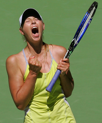 Fourth seed Russia's Maria Sharapova celebrates after winning her match against fifth seed compatriot Svetlana Kuznetsova at the Australian Open tennis tournament in Melbourne, January 25, 2005. Sharapova advanced into the semi-finals with a 4-6 6-2 6-2 victory. [Reuters]