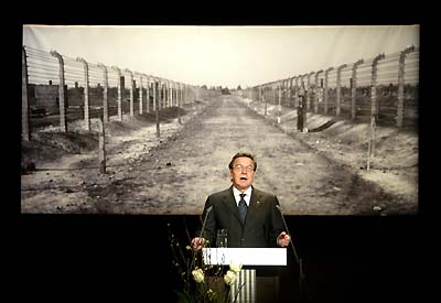Some 1.5 million people, most of them Jews from across Europe, died in gas chambers or of disease and exhaustion at Auschwitz and neighboring Birkenau. The death camps were the most notorious set up by Adolf Hitler to carry out his "final solution," the murder of Europe's Jewish population. Six million Jews died in the Nazi camps, along with several million others, including Soviet prisoners of war, Gypsies, homosexuals and political opponents of the Nazis. Amid concern that the lessons of the Holocaust still need reinforcing, elderly survivors of Auschwitz and world leaders will gather Thursday at the death camp site in Poland to mark its Jan. 27, 1945, liberation by the Red Army. "The evil of Nazi ideology did not occur without preconditions," Schroeder said at the event organized by the International Auschwitz Committee. "The brutalization of thought and the loss of moral inhibitions had a history; above all, Nazi ideology was desired by people and man-made." "There can be no compensation for the scale of the horror, the torture and the suffering that took place in the concentration camps," Schroeder said. The memory of the Nazi genocide "is part of our national identity," he said. "Remembering the era of National Socialism and its crimes is a moral obligation — we owe that not only to the victims, the survivors and the relatives, but to ourselves. "It is true that the temptation to forget and suppress it is great, but we will not succumb to it," Schroeder promised. He vowed German leaders would protect the country's growing Jewish community "with the power of the state against the anti-Semitism of the incorrigible. "That there is still anti-Semitism cannot be denied," Schroeder said. "Fighting it is the task of all society." Auschwitz survivor Kurt Julius Goldstein recalled being forced onto one of the Nazis' "death marches" westward as the Nazi defeat approached. "I was in a column that was about 3,000 strong when we set off," said Goldstein, 90, his voice breaking with emotion. "When we were registered at Buchenwald on Jan. 22, there were less than 500 of us — more dead than alive." Auschwitz "is the biggest cemetery in the whole world," said Goldstein, honorary president of the International Auschwitz Committee. "None of them has a memorial stone — the Nazis wanted them to be forgotten. We have a duty to prevent that." The Soviet liberators found some 7,000 people behind the barbed wire of the camp, many barely alive. Reports in western Europe of increasing anti-Jewish incidents such as vandalizing graves, and a walkout last week by members of a small German far-right party from an Auschwitz commemoration in a state legislature, have raised renewed concerns about the threat of anti-Semitism. Avner Shalev, chairman of Israel's Yad Vashem Holocaust Memorial, said the recent controversy in Britain over Prince Harry's wearing a swastika armband as part of a party costume showed education may be lacking among some young people. But many people in Britain responded immediately, he said.