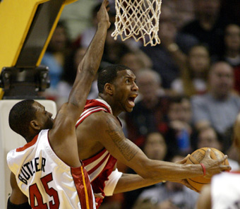 Tracy McGrady of the Houston Rockets (R) is