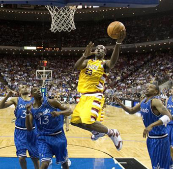 basket between Orlando Magic's Grant Hill, behind left, Kelvin Cato (13)