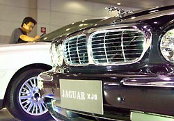 A Jaguar sits on display in an auto shop in Nanjing on November 21, 2004. [newsphoto/file]