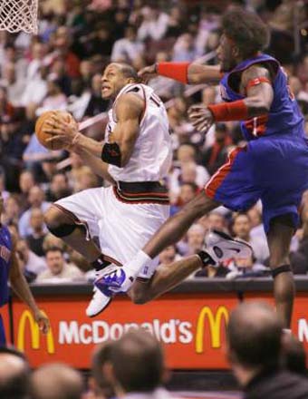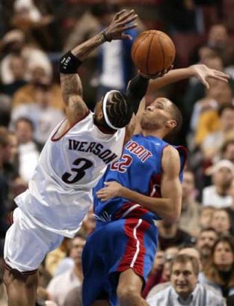 Tayshaun Prince, rear, guard Philadelphia 76ers' Allen Iverson (news) in