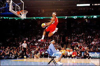 Stoudemire followed that with a perfect score of his own, throwing a pass off the backboard to Steve Nash, who headed it back to Stoudemire for a one-handed 360.