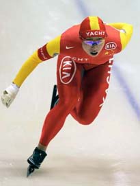 Wang finished third in Sunday's race by 38.45 seconds, while Anzhelika Kotyuga from Belarus won by 38.18 seconds ahead of Sayuri Yoshii of Japan, whose time was 38.44. Behind Wang, who won with 880 points, Kotyuga finished second with 714 points, and after a fourth place today, Japan's Tomomi Okazaki with 645 points was the best of the four Japanese ladies competing . In the men's 500 meters it was the overall top three that finished first second and third. Jeremy Wotherspoon was the only skater to break the 35-second barrier (34.96). Joji Kato finished in second (35.02), and Dmitri Lobkov of Russia finished third (35.11). In the overall rankings, Wotherspoon won with 788 points, Kato finished in second place with 608 points, and Lobkov was third with 543 points. Yu Fengtong from China was the happy winner of the men's 100 metre races in 9.52. His win secured him victory in the World Cup men's 100m final rankings. Yuya Oikawa of Japan finished second overall, followed by Mark Nielsen of Canada. The men's 1,500 metres concluded the Essent ISU World Cup season of 2004/05. Mark Tuitert of the Netherlands won the distance in 1:46.57, ahead of compatriots Simon Kuipers, who skated a personal best of 1:47.02 and Erben Wennemars, who with 1:47.52 was 0.02 seconds faster than Beorn Nijenhuis. Three Dutch skaters also make up the final ranking in the Essent ISU World Cup. Tuitert won with 361 points, Wennemars with 322 and Nijenhuis with 300.