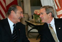 The president said the move will not break a strategic balance, referring to a remark by US President George W. Bush earlier at the NATO summit that lifting the ban might change a strategic balance in Asia, especially across the Taiwan Straits. Bush also signalled that Washington might take punitive steps against the European Union if it ends the weapons ban on China. Chirac said the allies of the United States, Canada and Australia, have never imposed such a ban or gave it up 10 years ago. At a summit between the United States and the EU after the NATO meeting, Chirac also stressed the importance of a strategic partnership with China. He said: "We have a lot of problems around the world such as warming climate and threats from diseases and poverty." To fight the problems, Europe needs co-operation from not only the United States, but also a strategic co-operative partnership with Russia and China, he added. China has insisted the embargo is "outdated" and "political" and the lifting would not harm the interests of any third party. Foreign Ministry spokesman Kong Quan on Tuesday urged the United States to follow the historical trend instead of setting obstacles. Bush met German Chancellor Gerhard Schroeder in the western German city of Mainz yesterday, amid street protests by thousands. EU to solidify trade ties with China