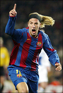 Chelsea's was a classic counter-attacking goal made by winger Damien Duff against the run of play just past the half hour. Duff had been ruled out as unfit only a day earlier by wily Chelsea coach Jose Mourinho but his speed on the break suggested his much discussed knee injury had never been too serious. After concerted pressure by the home side, England's Frank Lampard, an almost invisible midfielder for the first half hour of the match, supplied Duff with a pinpoint pass upfield. Duff sped down the flank and aimed a cross at Drogba which a sliding Belletti could only poke past keeper Victor Valdes. Frank Rijkaard's Barcelona were nearly caught again a minute later when Claude Makelele clipped the ball into Drogba's path from the centre circle. The striker raced clear and with just Valdes to beat bent an angled shot wide. Drogba, in his first match after more than a month out with a thigh injury, undid his good work early in the second half when he was sent off for colliding rashly with Valdes, his second yellow card after a first-half booking for a bad tackle. FULL ADVANTAGE It took Barcelona 11 minutes to take full advantage and with blue and red shirts bearing down on the Chelsea goal, substitute Maxi Lopez locked on to a pass from Eto'o and fired past Petr Cech. Six minutes later Eto'o and Lopez combined again, the Argentine, signed from River Plate in the January transfer window, his cross-shot being seized upon by the African Player of the Year who made no mistake from close range. For most match and even before Drogba's dismissal Chelsea were doing a holding job, stemming waves of jinking Barcelona runs from Ronaldinho on the right and Ludovic Giuly on the left, then from Lopez and Andres Iniesta. Barcelona may rue their profligacy in front of goal after repeated chances went begging as Chelsea earned a valuable away goal for the return leg at Stamford Bridge on March 8. By the last 15 minutes the London side were reduced to blocking, with every player behind the ball in a desperate rearguard action. It was the first time under Mourinho that Chelsea have lost two games in a row, having gone down 1-0 at Newcastle United in the FA Cup on Sunday, but the Portuguese coach will be thankful the margin was only one goal. Mourinho refused to make any public statements after the match and stopped his players from doing so. Chelsea issued a statement saying that they would make an official protest to UEFA about an incident at halftime, understood to be a conversation between Rijkaard and Swedish referee Anders Frisk. Rijkaard appeared bemused when asked about the incident. "I cant' say what was upsetting Mourinho so much, he said. "I spoke to the referee in a nice, friendly manner, maybe that's what started it but I don't understand it. "I said 'hello, nice to see you' and something about the game, nothing else. "I'm curious what Chelsea have to say about it. There was a lot of talk before the game and now there appears to be a lot after the game and I don't think that's a good thing. "It's a surprise that after the game they have invented a story about something that didn't happen." On the game, he said his match-turning decision to send on Maxi was straightforward. "We were 1-0 down and we had to try everything to help us win and change our formation to take advantage of the fact that they had been reduced to 10 men so I opted to put on another forward," he said.