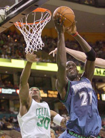 Kevin Garnett had 21 points, 13 rebounds and nine assists for the Wolves, who handed the Celtics their first loss since the return of Antoine Walker. Wally Szczerbiak added 20 points.