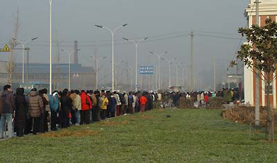 Citizens in Wuxi, East China's Jiangsu Province, queue to order apartments of a new porperty in December, 2004.