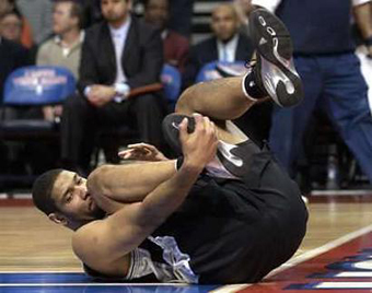 Duncan — the Spurs' leading scorer, rebounder and shot blocker — crumpled to the floor in the opening minutes of a 110-101 loss to Detroit on Sunday after scoring inside and coming down on Rasheed Wallace's foot. After the landing, Duncan's ankle turned in a gruesome fashion.