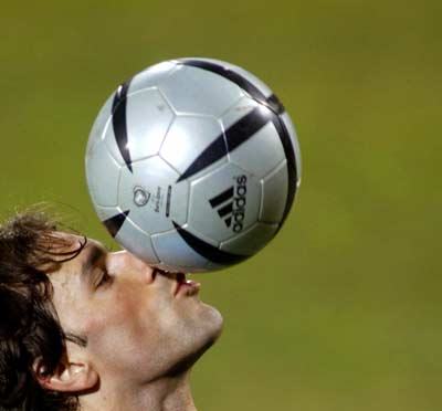 England's David Beckham jumps to control the ball during the FIFA World Cup 2006 qualifier match against Northern Ireland at the Old Trafford, Manchester, United Kingdom. England won the match 4-0. [AFP]