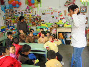 With 24 children under six, all the offspring of migrant vendors in the market, it is the first and only kindergarten of its kind in the city, which has nearly 100,000 pre-school aged migrant children in its 1,000-odd street markets. "My boy has learnt to say hello and goodbye to people and now knows to wash his hands before eating,"said Miao Congge, Cui's mother, who migrated to sell groceries in Beijing from North China's Hebei Province four years ago with her husband. She was once amazed when the boy stopped by a stall and politely spoke to an adult vendor. "Also, I no longer need to worry about his security while doing business," she added. Like most migrant workers on a low income, Miao says she is reluctant to send the child to an officially-run kindergarten which normally charges 400-500 yuan (US$48-60) a month. Additionally, kindergartens always open at 7 am, a time when most vendors are already busy transporting goods and have no time to take their children to school. The "kindergarten" class and most of the facilities were all provided by the market. Now Miao takes little Cui to the "kindergarten" at 9 am every day, where the boy learns through games and stories and takes part in various outdoor activities under the guidance of voluntary student teachers from Beijing Normal University. Parents are asked to play the teaching role in turns in the afternoon and are provided with regular sheets and books on how to educate kids. The market benefits too as its head Zhang Manhong said: "The kindergarten helps stabilize the vendors and contributes to the market's development." But Professor Zhang set it up with a further goal to develop a culture of mutual support inside migrant communities who cannot afford to send their children to kindergartens but are equally eager to give their children good education from a young age. She advises the communities to take into account parental resources when giving support to the education of the migrant children below school age. The Xicheng District is considering establishing similar pilot bases this year in other markets under a two-year project sponsored by the National Working Committee on Children and Women and the United Nations Educational, Scientific and Cultural Organization. The project was launched yesterday both in Beijing and Chengdu in Southwest China's Sichuan Province, with the aim of offering migrant children ready access to equal education and helping them integrate into communities they live in.