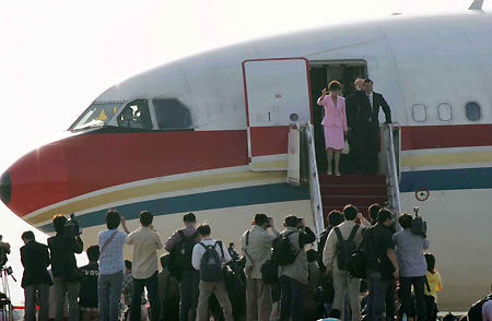 plane after arriving at the Nanjing Lukou International Airport, April 26, 2005.