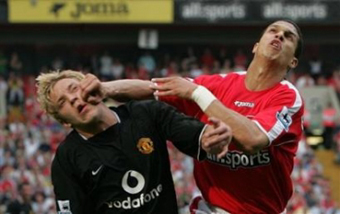 for the ball with Charlton Atheltic's Danny Murphy , during their English