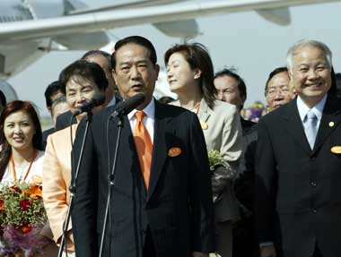 With 33 seats in Taiwan's "Legislature", PFP plays a crucial role in deciding the political future of Taiwan as both Taiwan's ruling Democratic Progressive Party and Kuomintang tend to seek its support to get their propositions approved. Calling himself embarking on "a trip of seeking the same roots of the Chinese people and building a bridge across the Straits forthe future", Soong and his delegation were honored with a red-carpet welcome from both the Taiwan Work Office of the CPC Central Committee and the Shaanxi local government. Looking down from the porthole of the China Southern Airlines Flight CZ3011 at the Yellow Loess, the cradle of Chinese civilization, Soong, 63, said he couldn't help getting excited when having panoramic view of this special place and meeting his dear folks in Xi'an. "Although Taiwan is only some 100 kilometers from the Chinese mainland, it took me more than 50 years to stride over the Straits and set foot on the mainland soil," he said. Apparently touched, Soong said in local Xi'an dialect, "We are of one family and should of course work together to create our common future." To underscore PFP's salient character, salmon, the color of itsparty flag, can be found on the costumes of all delegates, either a badge, a tie or a handbag, observers acknowledged. Soong said it should be the "common aspirations" of all the Chinese to seek the "mutual acquaintance, mutual understanding and mutual reconciliation" and to reach "common consensus, harmonious living and common prosperity." To materialize these aspirations, however, he called on people across the Straits to keep to three fundamental stances in opposition to "Taiwan Independence", adherence to the "1992 Consensus" and upholding peace. The previous Kuomintang member, who founded the PFP in 2000, underscored that anyone familiar with the political history of Taiwan knows that the PFP has never swayed on these principles of stance. "In contrast, it has always been working hard and assiduously for cross-Straits reconciliation," he said. Although many Taiwanese have voiced their concern about the "three direct links" before he left Taiwan, Soong said the most important thing was to have the people on both sides to share the same feeling. "If you share the same feeling, you share everything," he said. Soong and his delegation, at the invitation of the CPC Central Committee and