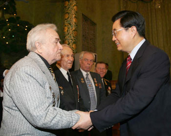 President Hu made the remarks during a meeting with Russian veterans who helped China force out the Japanese during World War II. Hu touched down in Russia yesterday at the invitation of Russian President Vladimir Putin to attend celebrations marking the 60th anniversary of the Soviet victory over Nazi Germany, which will be held today. "In this unprecedented war, the Chinese and Soviet peoples fought side by side and formed an everlasting friendship," Hu said. Many Chinese participated in the battles against Nazi Germany in the Soviet Union, including Mao Anying, son of late Chairman Mao Zedong. Russian Ambassador to China Igor Rogachev on April 29 in Beijing awarded medals to 27 Chinese who contributed to the fight against fascism in the former Soviet Union. According to records, in August 1945, 1.5 million Soviet soldiers launched attacks against the Japanese army in northeastern China on three fronts. In partnership with the Chinese army, the Soviet Red Army wiped out the enemy in about 20 days. "Many of you took part in the war against Japan in Northeast China and I show my sincere gratitude to you," said Hu, winning a round of applause from the veterans. "The victory was the result of our close co-operation on the battlefield," said 84-year-old Vasili Ivanovich Ivanov, who helped liberate Harbin in Northeast China's Heilongjiang Province. He said he felt "proud" and "honoured" to meet President Hu in Moscow. Ivanov, who is a member of the Russian Veterans' Committee, has visited China several times. He told China Daily that he was impressed by the fact that China has done a lot to preserve the cemeteries of Soviet soldiers. In his speech to Russian veterans, Hu urged people to learn from history so as to treasure peace and look forward to the future. Chinese people have suffered a lot from war and deeply appreciate peace, Hu said. "China will persistently uphold the banner of peace, development and co-operation and make unremitting efforts to safeguard world peace and promote common development," Hu said. Peoples from China and Russia should join efforts to achieve the goal of establishing a world of lasting peace and prosperity, said Hu. In this vein, he said, the establishment of the strategic partnership between China and Russia was in the basic interests of the two countries and peoples. Also yesterday, Hu held separate meetings with President Roh Moo-hyun of South Korea and President Saparmurad Atayevich Niyazov of Turkmenistan. Today, Hu will stand shoulder to shoulder with more than 50 world leaders in Moscow's Red Square for the victory celebrations.