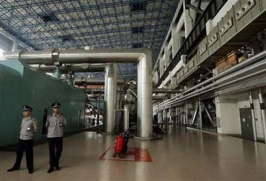 Security guards stand at the Qinshan No. 2 Nuclear Power Plant, China's first nuclear power plant, at Qinshan, about 125 kilometers (about 90 miles) southwest of Shanghai, China, Friday, June 10, 2005. [Reuters]