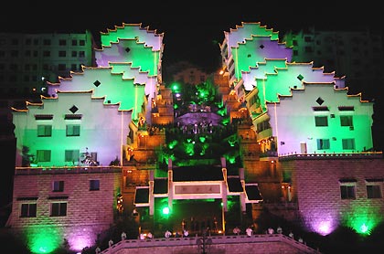 The night scene of the Quzi Street, named after the patriotic poet Qu Yuan (A.D.340-A.D.278) , is shown in this photograph taken on July 15, 2005 in the Guizhou town, which is near the famed Three Gorges of the Yangtze River. [Xinhua]