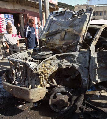 of a suicide car bomb attack in Baghdad September 14, 2005. The blast in
