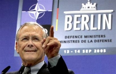 At the conclusion of a two-day NATO meeting, Rumsfeld took reporters' questions about the American presence there but stoutly avoided getting into any specifics about force levels. "U.S. forces will of course continue to play a strong role," he said. Asked about reports the Bush administration wants to slash the U.S. military presence there by as much as 20 percent, Rumsfeld told a news conference that "the only people who are going to increase or decrease U.S. forces in Afghanistan will be the president of the United States or me." Rumsfeld said that U.S. officials are constantly assessing and reassessing troop levels and said that they have been raising or lowering the U.S. military presence as required and necessary. "If and when there's any decision to decrease forces," he said, "I will announce it." Both The New York Times and The Washington Post reported in Thursday's editions that the administration was considering cutting the troop strength there by as much as 20 percent. Rumsfeld said Tuesday that NATO should ultimately take over anti-terrorism operations and drug interdiction in Afghanistan, now handled by the U.S.-led coalition, but he refused to set a timetable for drawing down American troops. More detailed talk was stifled by fears about increased violence accompanying parliamentary elections in Afghanistan scheduled for this coming weekend, as well as the upcoming elections in Germany, where some have openly opposed any increased combat missions for NATO. Rumsfeld dismissed as "much ado about nothing" reported divisions among the alliance countries over whether NATO should work toward a unified peacekeeping and military command structure. During the meetings, Rumsfeld urged his defense counterparts to find ways to increase the military flexibility of NATO's forces and the financing for the alliance. Several countries put limits on the military activity their forces can engage in as part of NATO, such as limiting where they can go or what type of combat force they can use. "I personally am encouraged by the enduring effort to make the alliance a more flexible and more capable force," Rumsfeld said. There will be a "unity of effort if not a unity of command," he said. Afghanistan's elections come four years after the U.S. invaded the country to overthrow the Taliban. Insurgents have vowed to disrupt the balloting. NATO has 11,000 mostly European troops providing security in northern and western Afghanistan. Around 19,000 U.S.-led troops cover the south and east. The alliance plans to expand slowly its peacekeeping role and eventually take primary responsibility for security in the country. Thirty-five countries have troops in Afghanistan, including a number of non-NATO nations. Under the NATO plan, German troops will take the lead role in the north, Italians in the west, British in the south and Americans under NATO command in the east. French and Turkish troops will lead in Kabul — working alongside Afghanistan's fledgling army and police. Meanwhile, Afghan President Hamid Karzai said the U.S.-led coalition needs to reconsider the way it is fighting Taliban-led rebels. His comments came after six months of fierce battles that have left more than 1,200 dead. He suggested combating the problem where "terrorists are trained" but declined to elaborate. Afghan officials say many insurgents train in secret bases in neighboring Pakistan, despite denials from Islamabad.